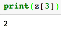 z = [three, seven, 4, two] # Admission the first detail of a listing at index 0
