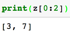 Slices are good for getting a subset of values in your list. For the instance code below, it will return a list with the items from alphabetize 0 upwardly to and not including index 2.
